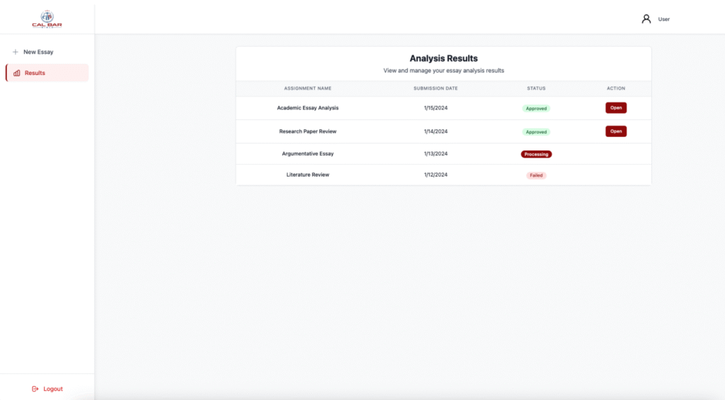 The platform streamlines essay evaluation for professors, institutions, and students, reducing manual grading time while improving consistency and transparency in assessment.